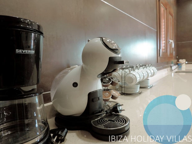 Een volledig uitgeruste keuken met kookeiland en ontbijthoek, Dolce Gusto koffieapparaat